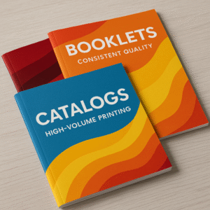 Digital or offset booklets with saddle‑stitch, perfect‑bound, or wire‑O bindings.